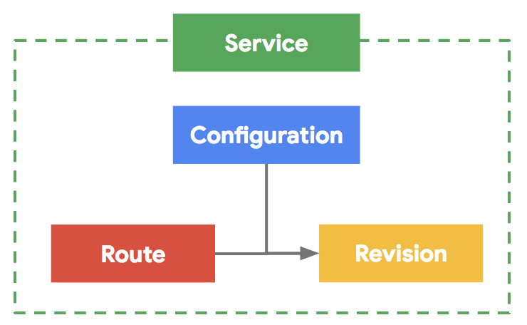 - Route — assigns traffic to a revision or revisions of your service